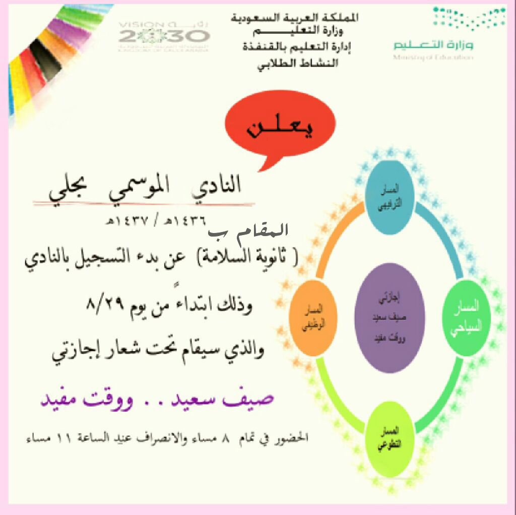 بقلم / ممثلة الانديه ورئيسة قسم نشاط الطالبات بمحافظة القنفذه