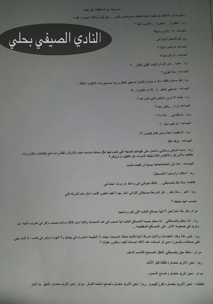 المسار التطوعي : يوم الاحد 9/7 تنفيذ مسرحيه عن ( المحافظه على البيئه )