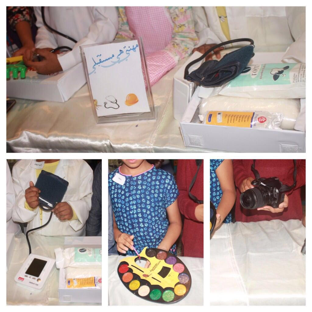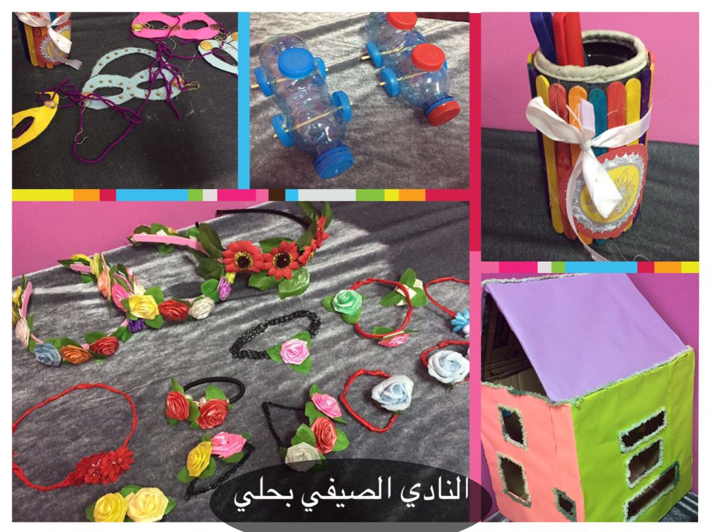 من اعمال طالبات المرحلة الابتدائية في إعادة تدوير العلب .المسار الوظيفي
