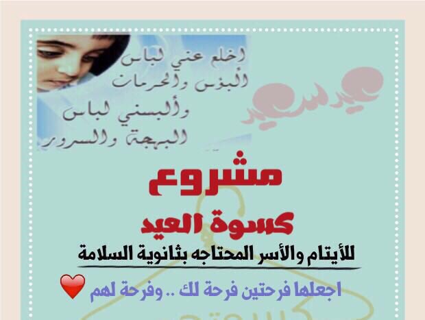 الصدقه لها تاثيرهاالايجابي في المجتمع ومن هذا المنطلق قام المسارالتطوعي بمشروع كسوةالعيدليعم الخيروتنتشرمشاعرالمحبّة